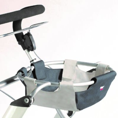 Tygkorg till inomhusrullator Let’s Go från svenska Trustcare. Praktisk tvättbar korg som enkelt fästs med kardborrband på rullatorn. Tygkorgen kan användas tillsammans med brickan.