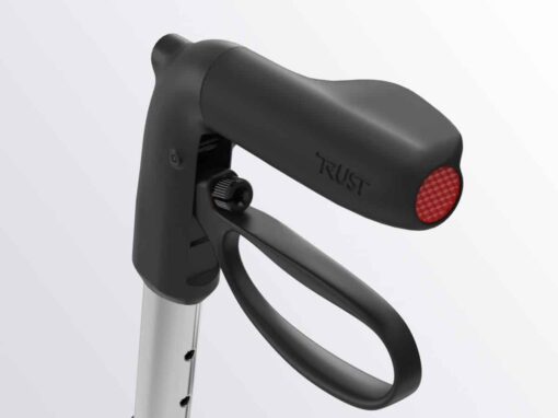 Du kan även köpa till en bricka som kan läggas på sitsen, så rullatorn kan fungera att använda inomhus. Glöm inte att kontrollera så att den kan passera dörröppningar och liknande. En ren inomhusrullator från Trustcare är mer lättmanövrerad inomhus, men det går ofta att använda deras utomhusrullatorer inomhus.