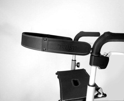 Svart ryggstödsband till rullatormodellerna Let’s Go Out och Let’s Fly från svenska Trustcare. Ryggstödsband är en extra säkerhet när du sitter ner på rollatorns sits för att vila. Det är enkelt att montera.