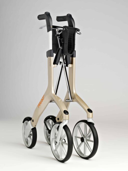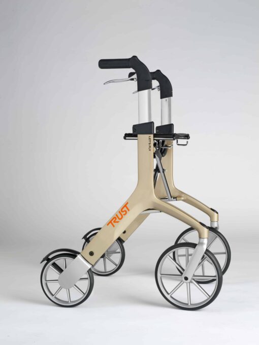Lets’ Fly från svenska Trustcare – här i färgen Champagne. En rullator med låg vikt och modern design.